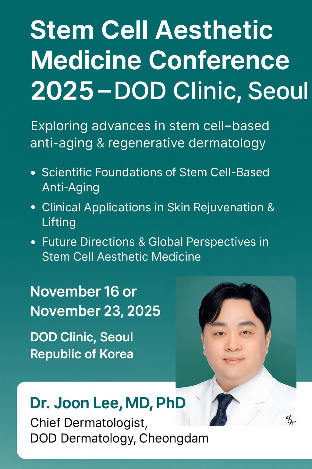 Join leading experts in regenerative dermatology and aesthetic medicine at the Stem Cell Aesthetic Medicine Conference 2025, hosted by DOD Clinic — Korea’s first MOHW-designated Advanced Regenerative Medicine Implementation Institution.